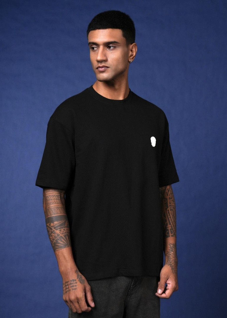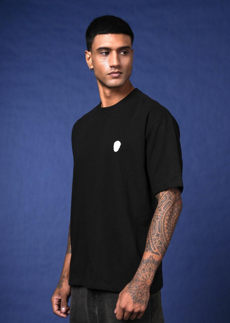 Black Drop Shoulder Silicone Monogram T-Shirt.