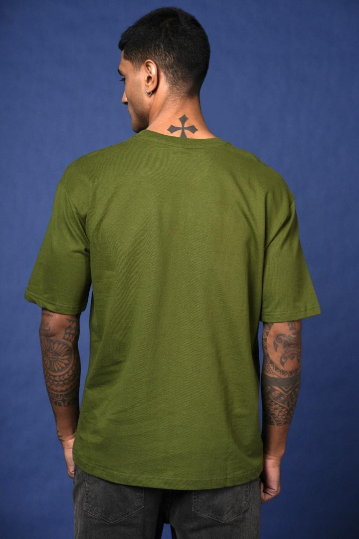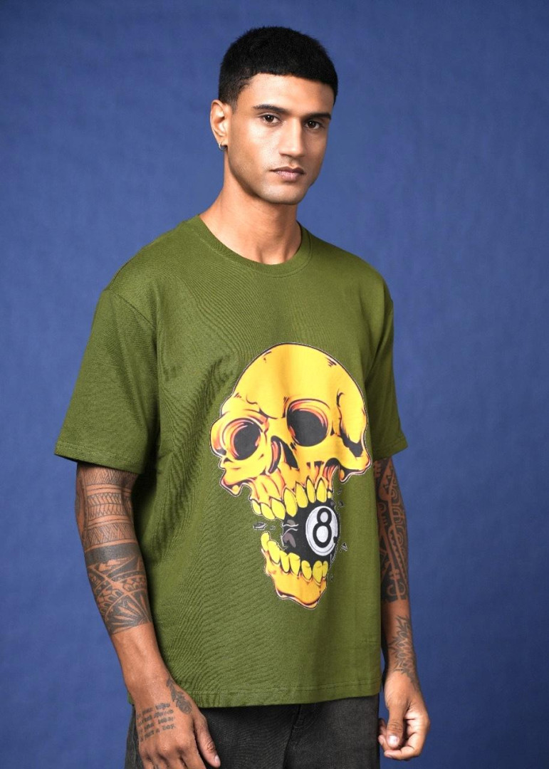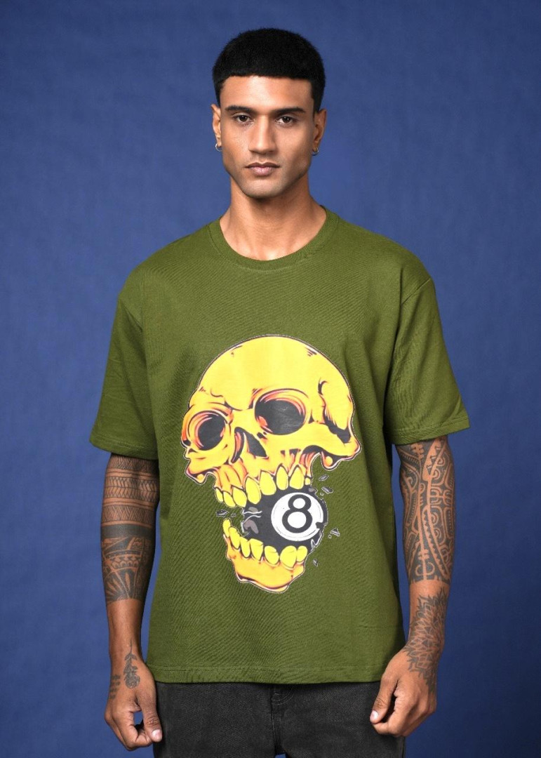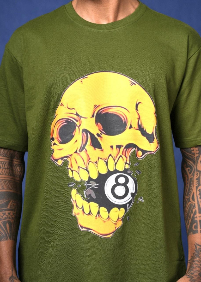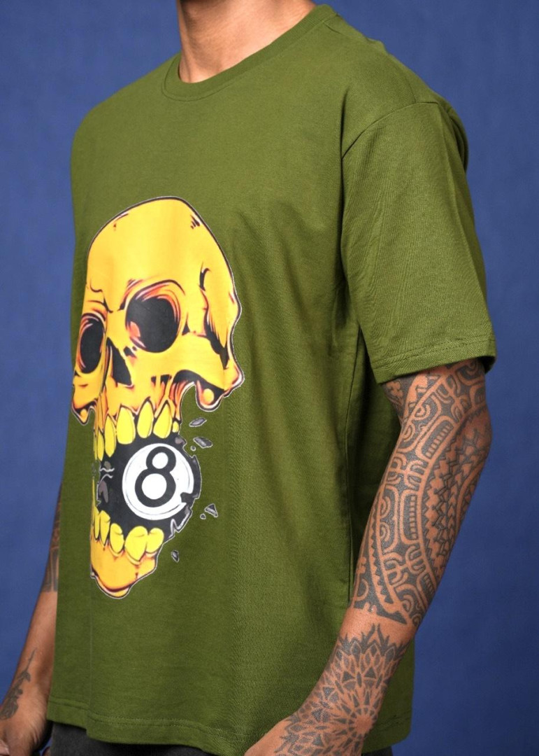 army green 8 ball Drop Shoulder DTF Printed T-Shirt.