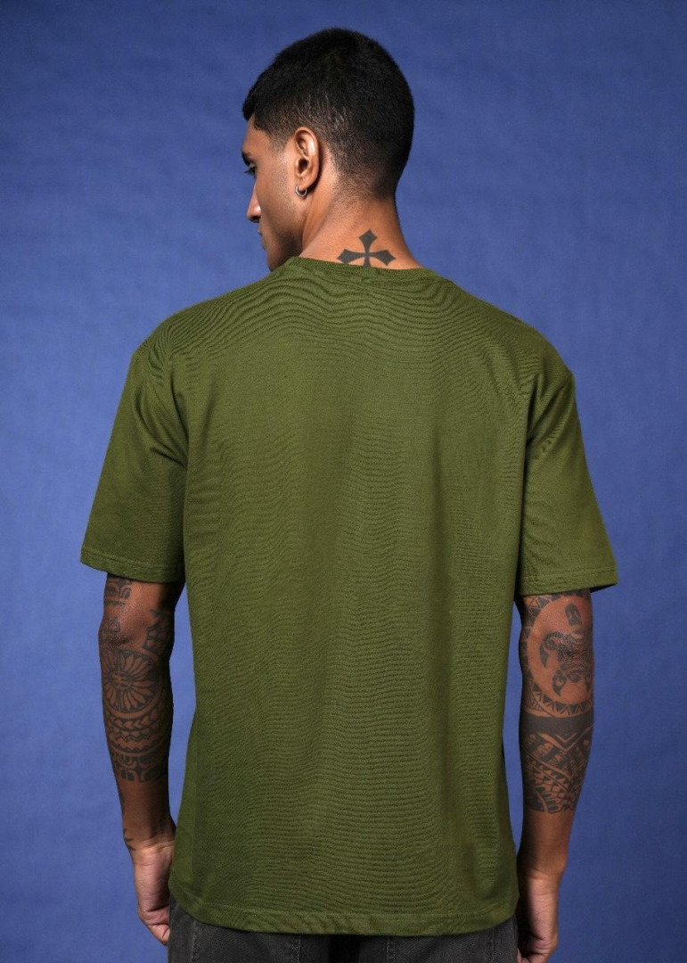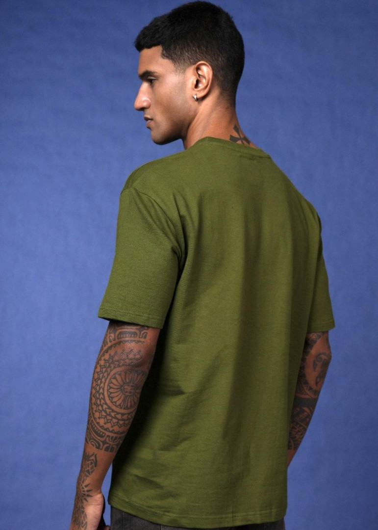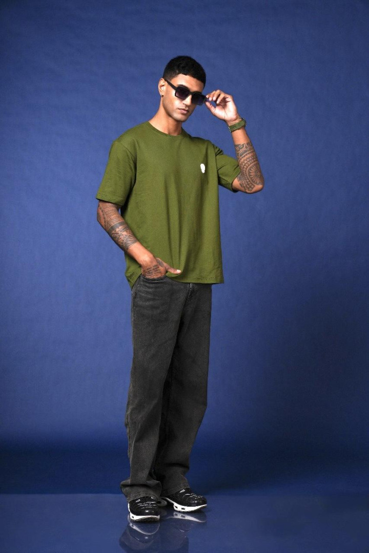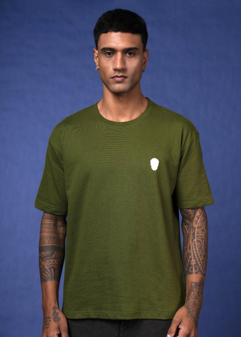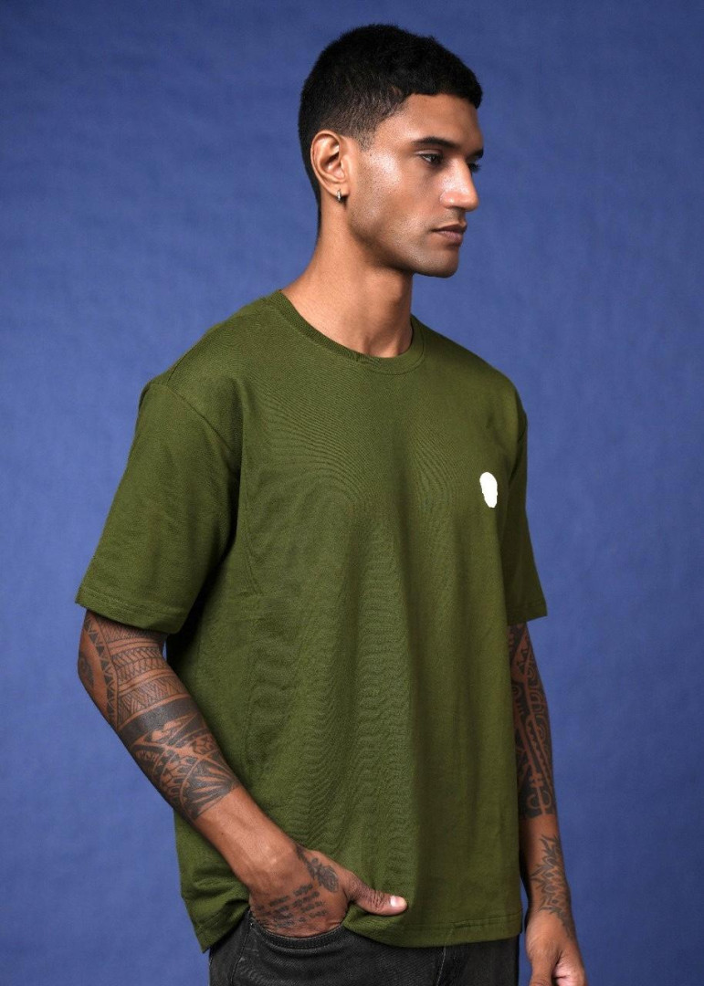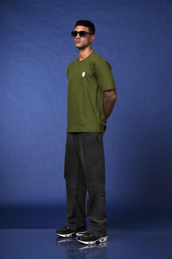 Army Green Drop Shoulder Silicone Monogram T-Shirt